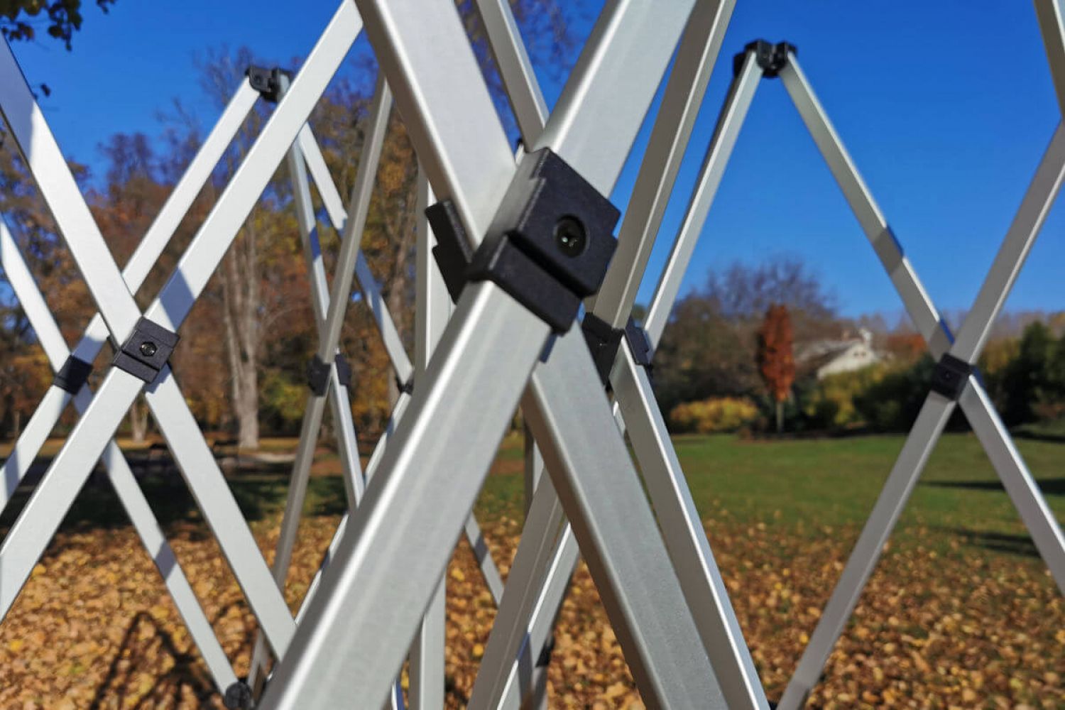 - Tiden för att ställa upp och ta ner montern med 1-2 personer är bara 40 sekunder!