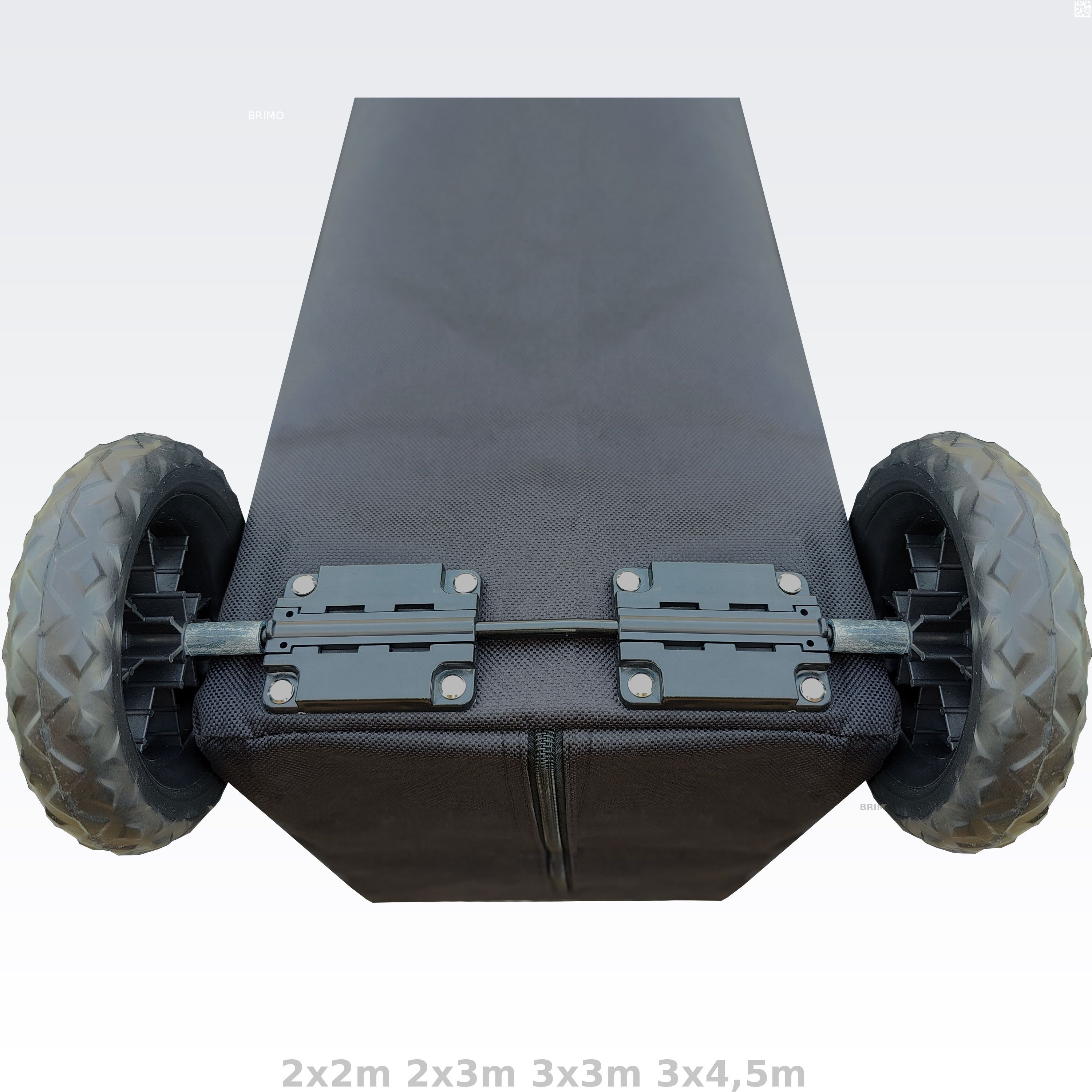 - Hela ramen på det hopfällbara tältet med tillbehör kan läggas i transportväskan och du kan dra i den på hjulen bakom dig genom att hålla i handtaget.